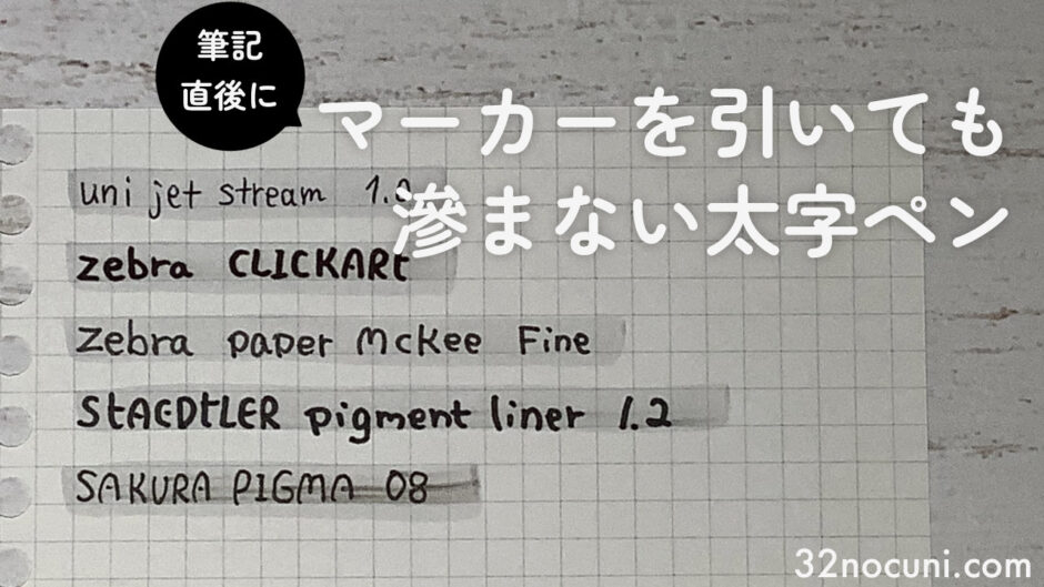 今回は、筆記直後にマーカーを引いても滲まない太字ペンを検証したいと思います。