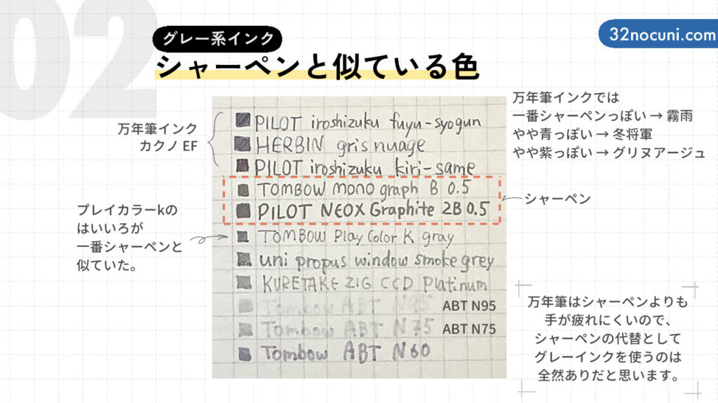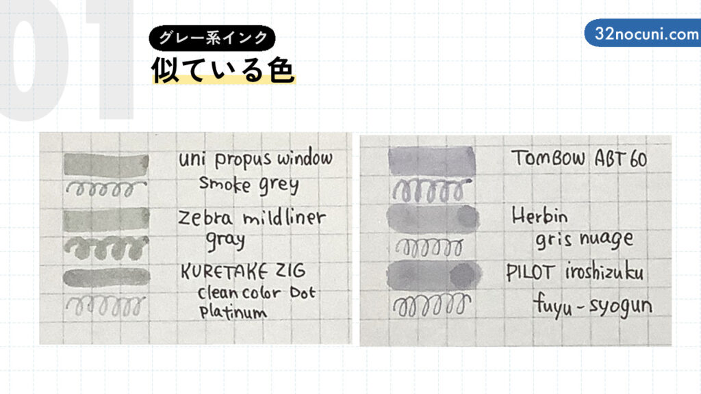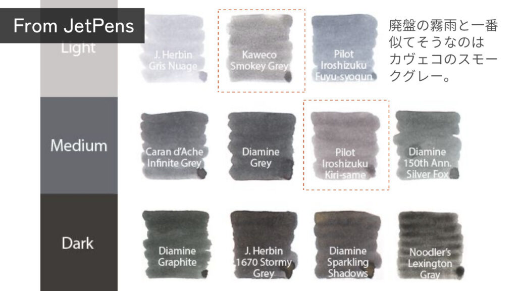 下記リンクはグレーインクの詳細な比較が載っていて、すごく参考になるのでぜひ行ってみて下さい。