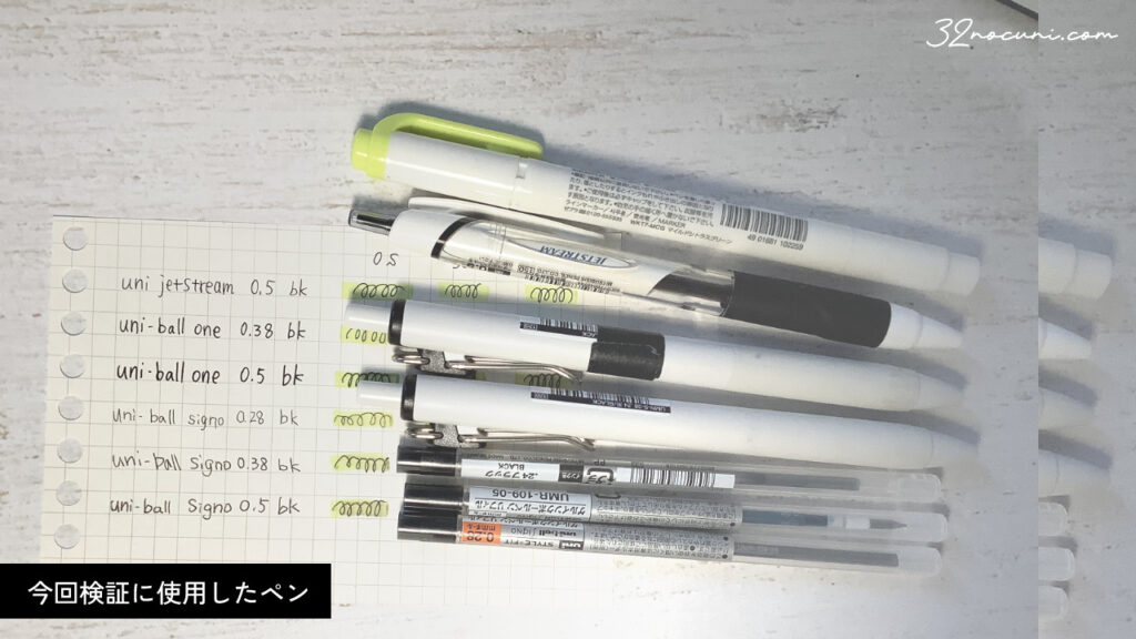 上から水性マーカーが引けるボールペンと言えば油性ボールペンですが、速乾性のあるゲルインクペンの中にもいけるものがあるのでは?と思い、検証してみることにしました。
